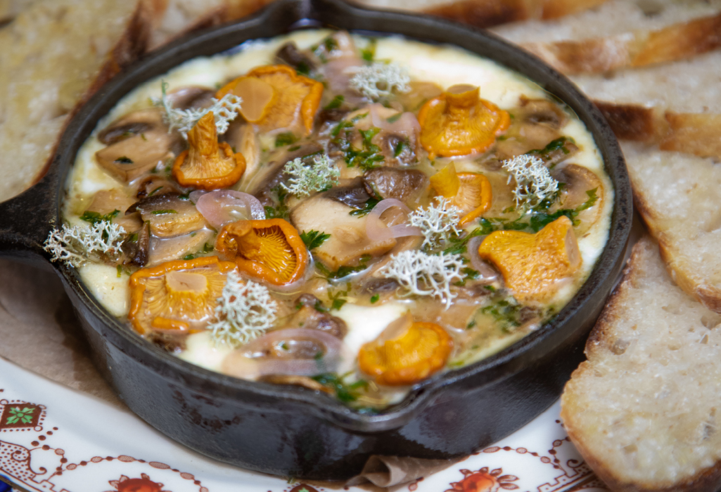 “[Chanterelles] are our favourite ingredient, no doubt about it,” Robstad said. “We have them heavily sprinkled across our menu. It’s on our design, our website, our shirts. Beth and I searched for the elusive chanterelle grounds in Saskatchewan for a couple of years before we figured out how to find them, and when we found our first chanterelle, we held each other and cried ‘Yeah, we did it. Oh my God.’ It was a great moment.”
